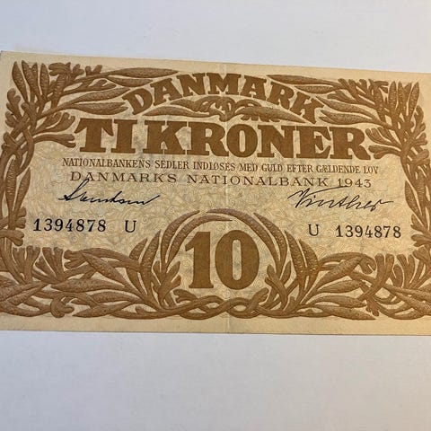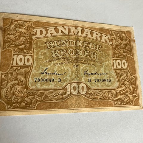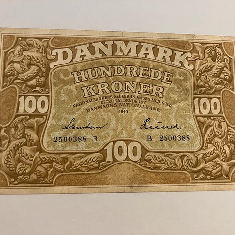100 Kroner 1943 B Danmark - Mindre hul nedert samt rift