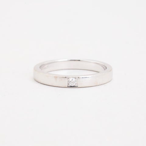 Alliancering med diamant (0.135 ct) i 14K hvidguld, str.