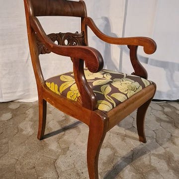 Armstol i massivt mahogni, fra 1950erne.