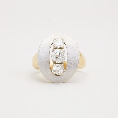 Trestensring i 14K hvidguld, med diamanter (0.33 ct), Str.