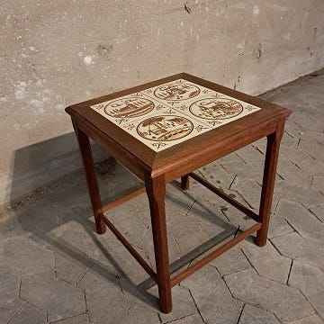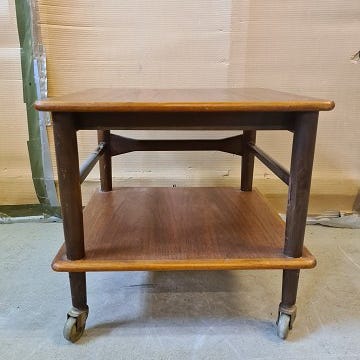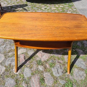 Dansk møbelproducent lampebord med plade af massiv teak samt ben i bejdset bøg.