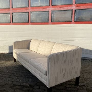 3 pers. sofa fra 1930'erne. Overpolstret på stel af nød og birk. Fremstår pæn og velholdt uden nævneværdige brugsspor. Sofaen er en del af sofasæt med nr. (80860).