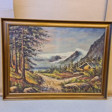 Maleri af landskab i Volsted af Leon Møller, fra år 1962.