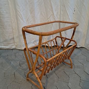 Lille bord i bambus med frostetglas, fra 1990erne.