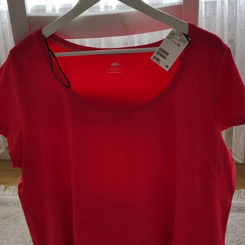 Der er ikke anført str., men jeg vurderer, at den passer en str. 40-42. Den måler ca. 40 cm fra yderste skuldersøm, og ca. 62 cm fra yderste skuldersøm og ned.