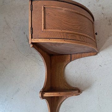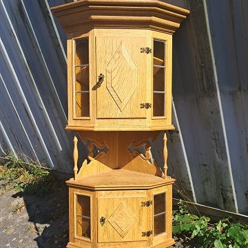 Væghjørneskab i massivt fyrretræ, fra 1910erne.