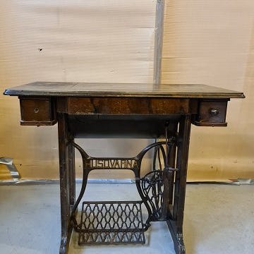 Gammel Singer symaskine på metastel, fra 1910erne.