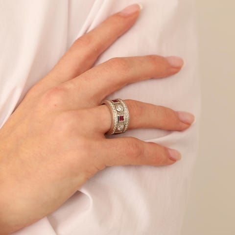 Marquisring med diamanter (0.11 ct) i 14K hvidguld med en
