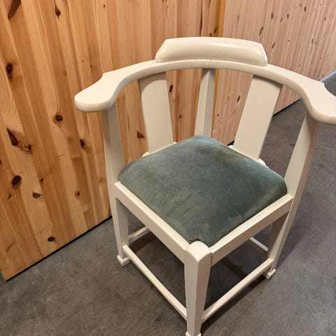 Andet, Træ, b: 56 l: 110, Ældre træstol med udsmykninger. Puden er slidt og skal nok udskiftes. Kom med et bud.