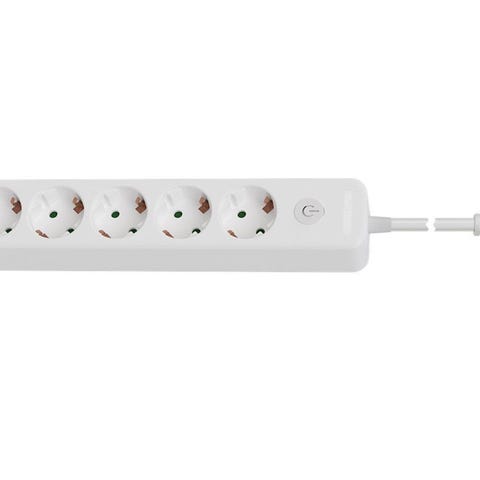 PRIS-MATCH! 4-stikdåse Schukostik og USB (230V 4x CEE 7/3) | Børnesikret 4-stikdåse i hvid med schukostik, afbryder og 2x USB udgange, der kan lade med 2.1A hver. Leveres med fastmonteret ledning på 1.4 meter.