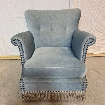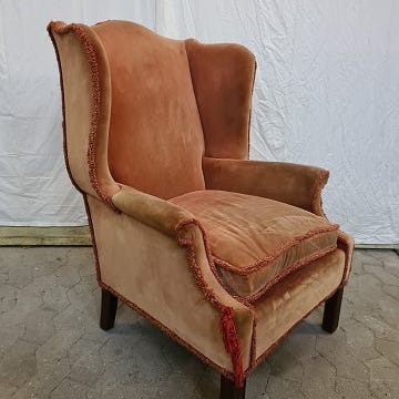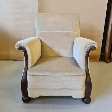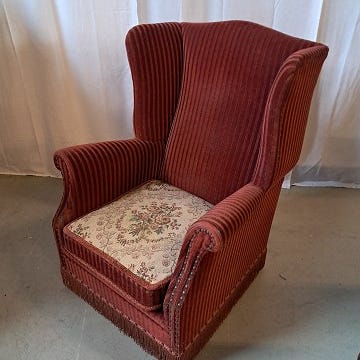 Lænestol i velour med skåneærmer, fra 1950erne.