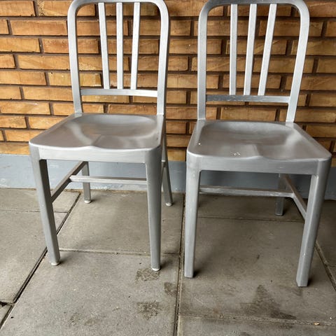 Denne stilfulde spisestol fra METALMOBIL er designet af italienske Francesco Geraci. Sæde-/rygstykke er i brunt Polypropylen (plast), mens benene er brunlakerede stålben. Stolens sædehøjde er 46 cm. Øvrige mål er: ryglæn højde – 80 cm, bredde – 45 cm, samt dybde – 53 cm. Stolen kan stables (op til 8 stole af gangen). Lagerbestand: 8 stk. Stolene fremstår i pæn stand, med mindre brugsspor.