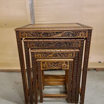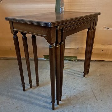 3 Inskudsborde i fineret mahogni, af nyere dato.