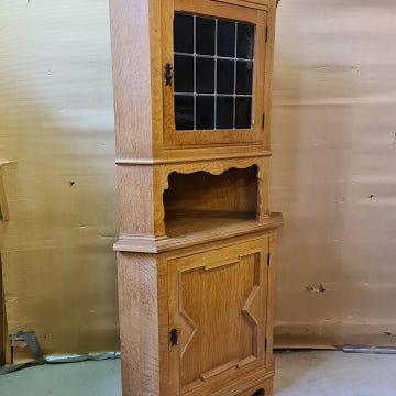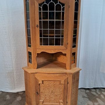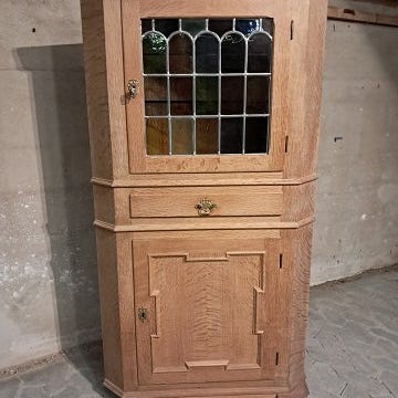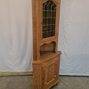 Hjørneskab i fineret egetræ, fra 1950erne.