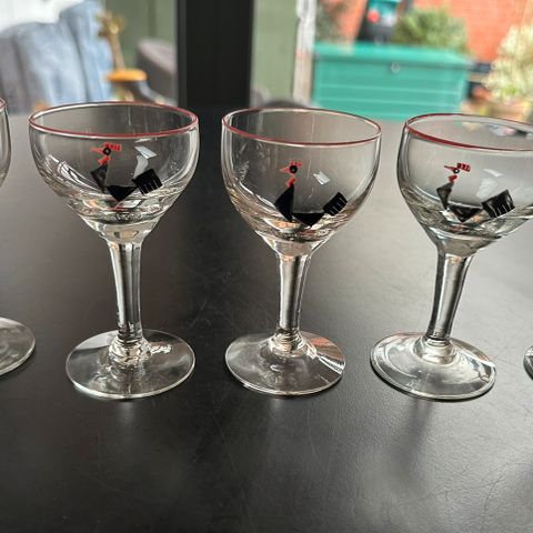 Glas, NeckGlas, Holmegaard, "NECK - GLASES", "GILDE". Glas u/fod men m/ læderremme, som man tager omkring halsen, og har da hænderne frie.