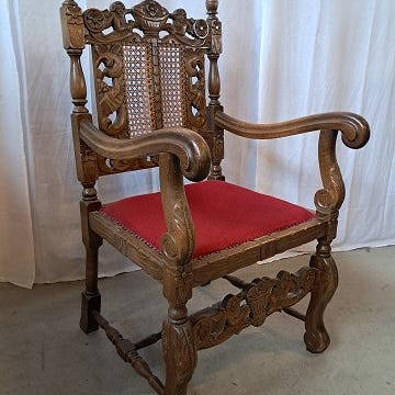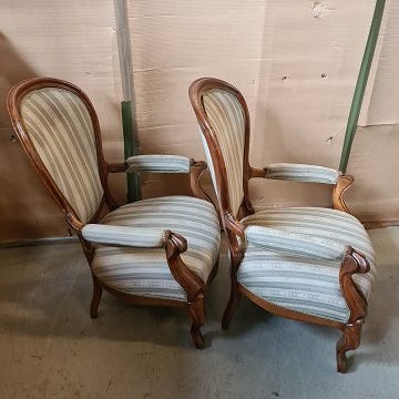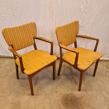 2 Armstole i massivt egetræ med intakt rørflet, fra 1930erne.