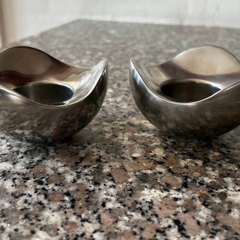 Fyrfadsholder, Georg Jensen, 6 superflotte højglanspoleret rustfrit stål Georg Jensen fyrfadsholdere bordmodel. 5,5 cm høje og 9 cm i diameter. Pynter i ethvert hjem. Pæne og vejer 350 gr hver. Samlet Nypris 1500 kr. Sælges til fast samlet pris + evt DAO fragt.