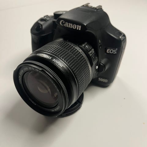 Canon, 500D, spejlrefleks, God, Canon 500D DSLR kamera med 18-55mm zoom, batteri og lader. Super godt begynder kamera.