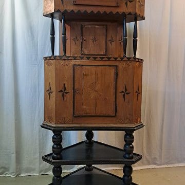 Væghængt almuemalet hjørneskab, fra 1860-1880erne.