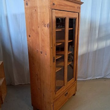 2 Vitrineskabe i fineret egetræ, fra 1970erne.
