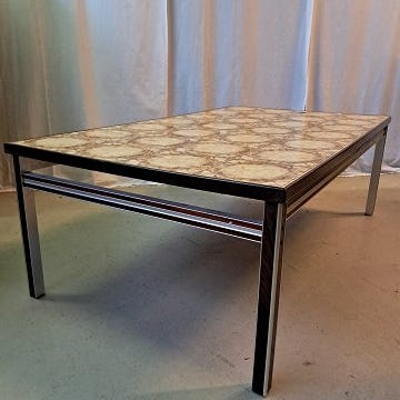 Sofabord i palisander og metalplade med verdenskort, fra 1980erne.