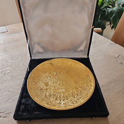 Guld fad, Sælger tre ens guld fade i ubrugt stand. Str 34,5 cm d 18 cm h 2,5 cm