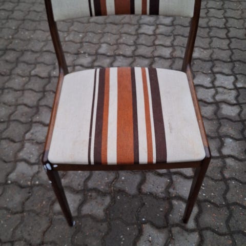 To spisestole i mørkbejdset træ, Johannes Andersen for Uldum Møbelfabrik