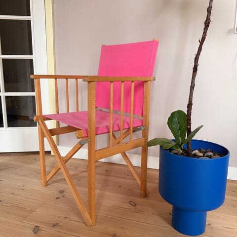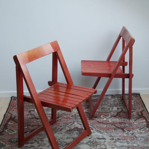 Foldestol model: Trieste udført i rødbejdset træ m. sæde i sømbeslået