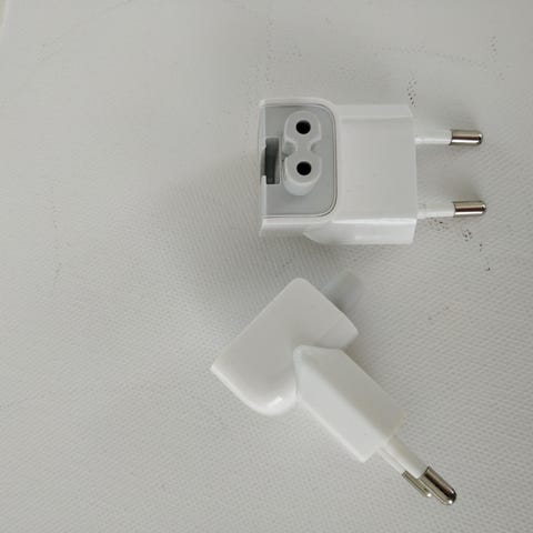 CoreParts Strømadapter (230V AC, Type C Euro Duckhead) | strømstiksadapter ("Duckhead") til Apple-enheder. Stikket danner det ene hjørne af strømforsyningsblokken, praktisk når din lader skal bruge Type C Euro stik.