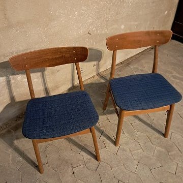 6 Stole i massivt bøgetræ og fineret teaktræ med kunstlæder betræk, fra 1960erne.