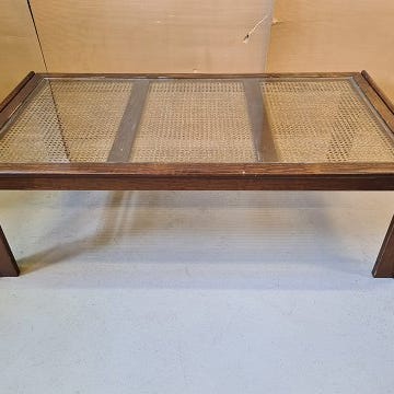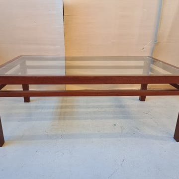 Sofabord fra 1940'erne I mahogni og glasplade. Under glaspladen er ilagt et kort over nord-øst Sjælland. Kortet har lettere fugtskjolder i bunden. Selve bordet er i fin stand og udmærket stabilt.