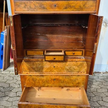 Skab i fineret mahogni, fra 1890erne.