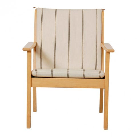 Hans J. Wegner ænestol i bejset bøgetræ og fjedrehynder betrukket med Uldstof produceret af Getama i 1950’erne.