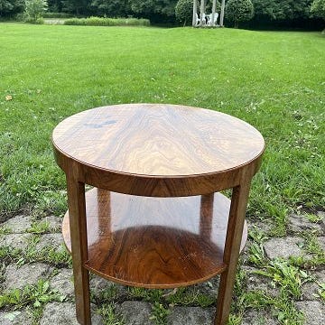 Dansk snedkermester sofabord med hylde og plade af fineret elmetræ fra 1930-1940