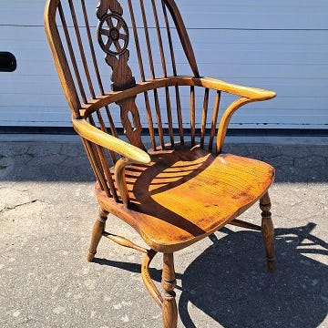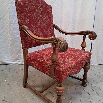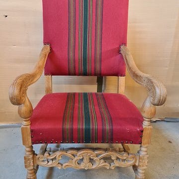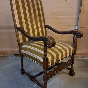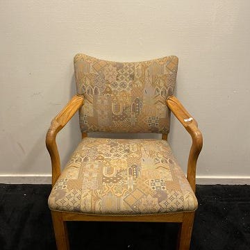 Armstol fra 1970´erne i syret eg. Fremstår pæn og udmærket stabil dog med en lille skade på udskæringen (billede).