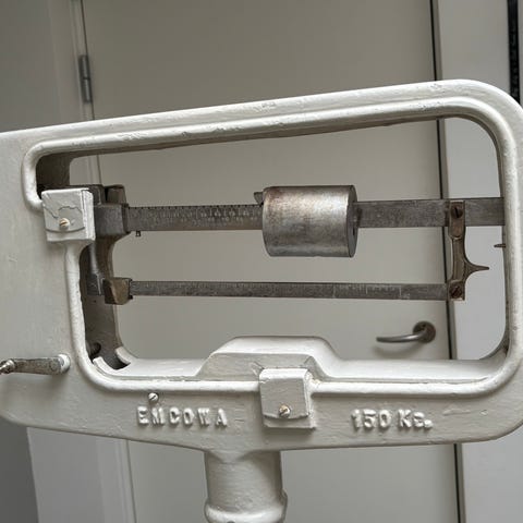 Gammel personvægt i malet jern, fra 1930erne.