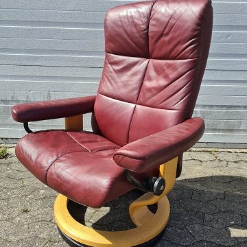 Stressless lænestol i læder med fodskammel, fra 2000erne.