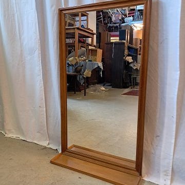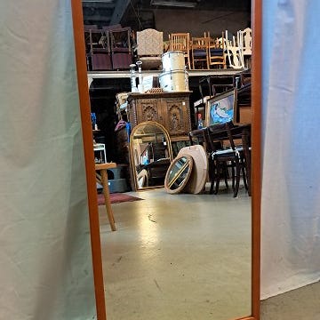 Spejl i fineret fyrretræ, fra 1970erne.
