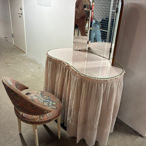 Marie Antoinette sminkebord med glasplade, fra 1930erne.