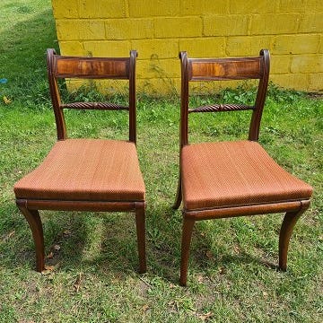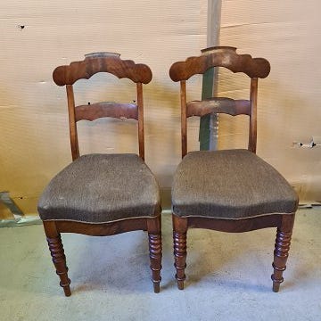 2 stole i birk med sæde i rørflet. Svensk produceret i 1930'erne. Fremstår pæne, velholdte og udmærket stabile med få brugsspor for alderen.