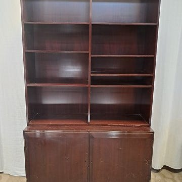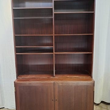 Reol i massivt mahogni, fra 1980-1990erne.