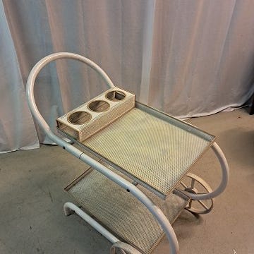 Rullebord fra 1960´erne med matteret glasplade. Fremstår pænt og ok funktionelt uden de store brugsspor.