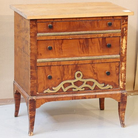 Malet kommode i massivt fyrretræ, fra 1910erne.