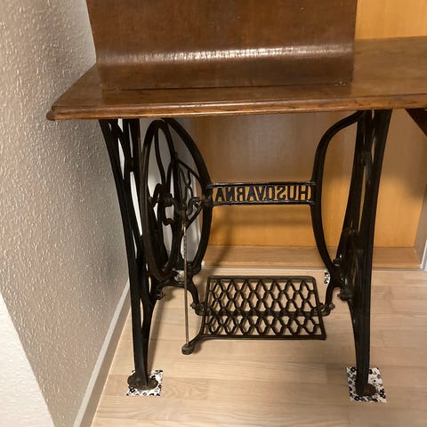 Husqvarna symaskine i ege og birketræ, fra 1910erne.
