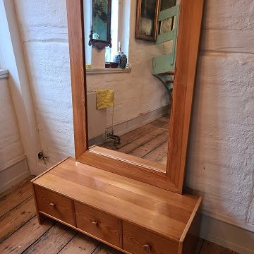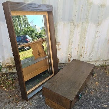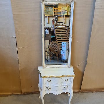 Spejl i bambus og konsol med gklasplade, fra 1990erne.