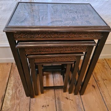 Indskudsborde i orientalsk stil. Fremstår pæne og velholdte uden nævneværdige brugsspor.