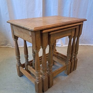 3 stk. indskudsborde i malet massivt egetræ, fra 1980erne.
