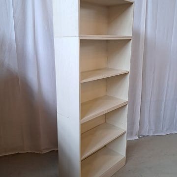 Reol i krydsfiner med sokkel, fra 2000erne.