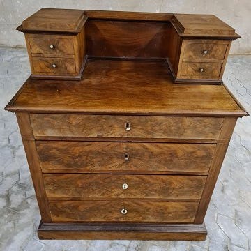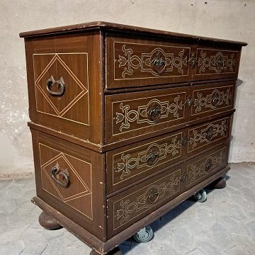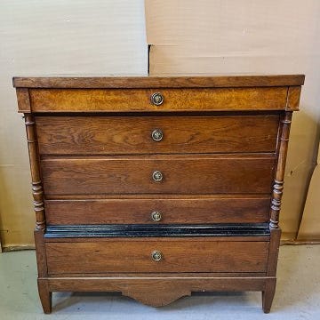 Dragkiste i fineret mahogni og bøgetræ, fra 1890erne.