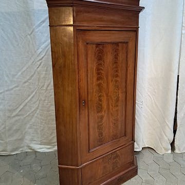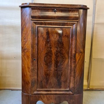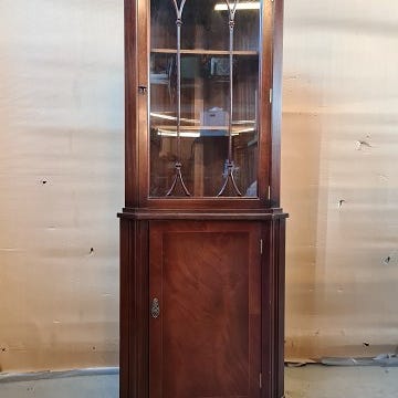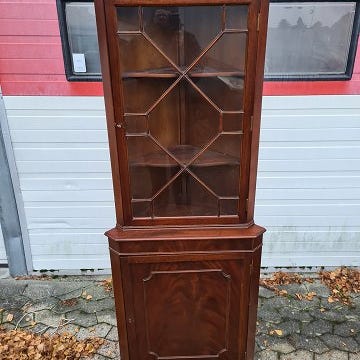 Udmærket hjørnskab i mahogni fra omkring 1900. Fremstår pænt og stabilt for alderen.